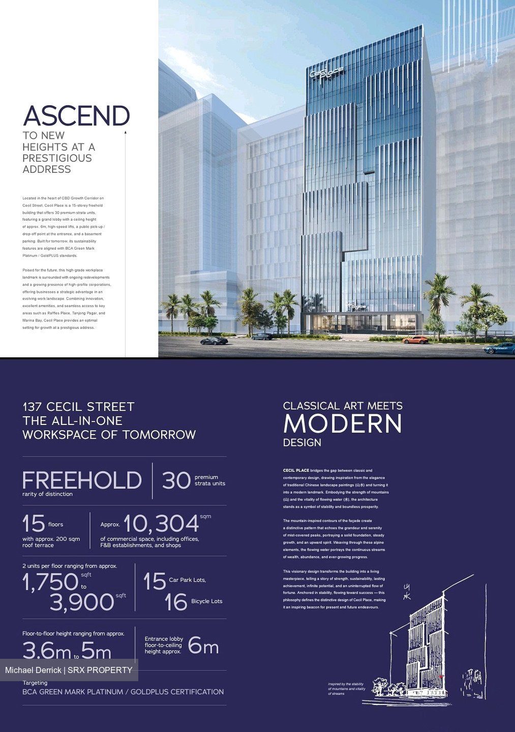 Cecil Suites (also marketed as Cecil Place) is a rare, brand-new freehold strata office development located at 137 Cecil Street in the heart of Singapore’s Central Business District. This 15-storey premium commercial project features 30 exclusive units with column-free layouts and modern amenities with strategically positioned for high connectivity.
