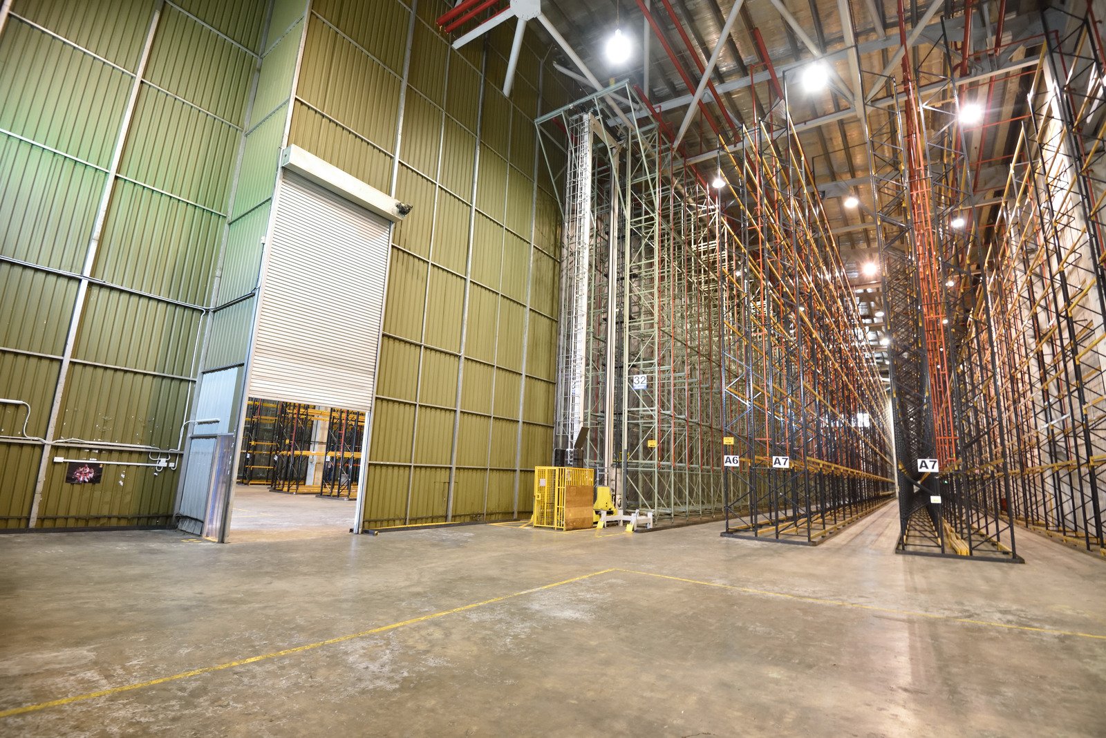 Moving items between floors is facilitated by a dedicated lift system. Large cargo lifts, sized for bulky industrial pallets and heavy equipment, serve floors that lack direct ramp access. This system maintains workflow continuity and allows equipment to be moved in and out of any unit without difficulty, ensuring efficient movement.