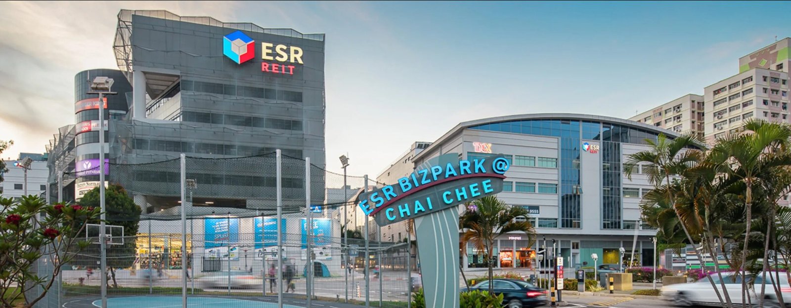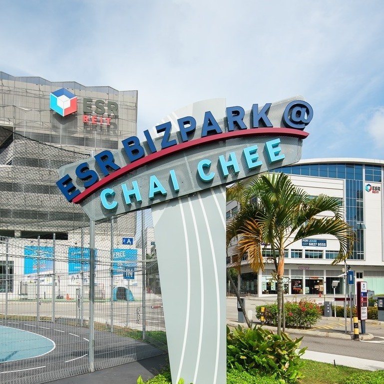ESR BizPark @ Chai Chee is an integrated business park development in Bedok that combines high-spec industrial and office spaces with a diverse retail component featuring restaurants, a food court, and factory outlets.